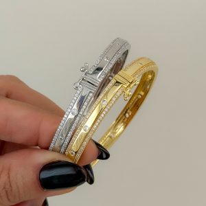 بنگل ونکلیف نگین دار قفلی باز و بسته میشه دارای آبکاری طلا