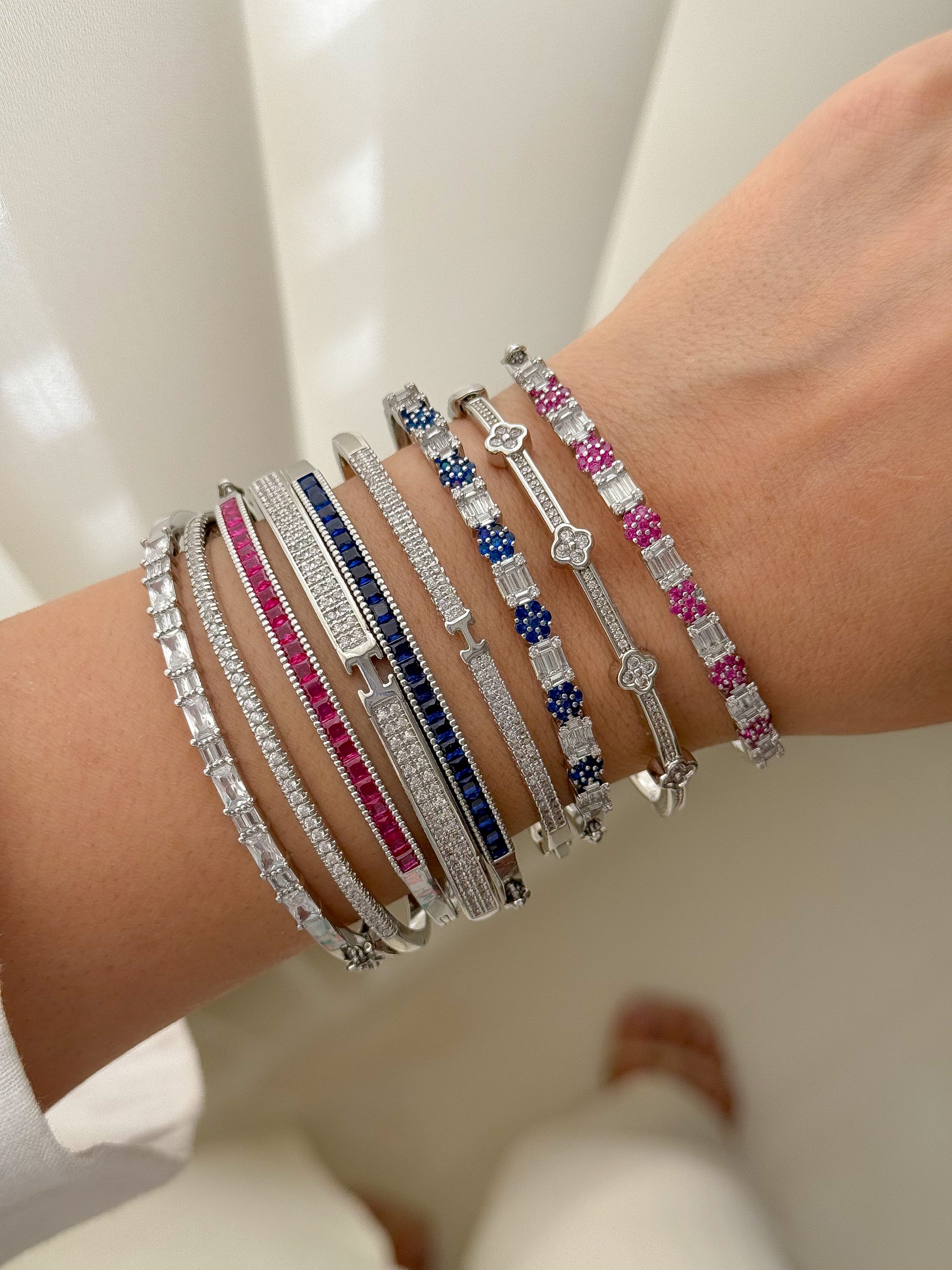 دستبند جواهری نقره ای با نگین های زیرکونیا اتریشی