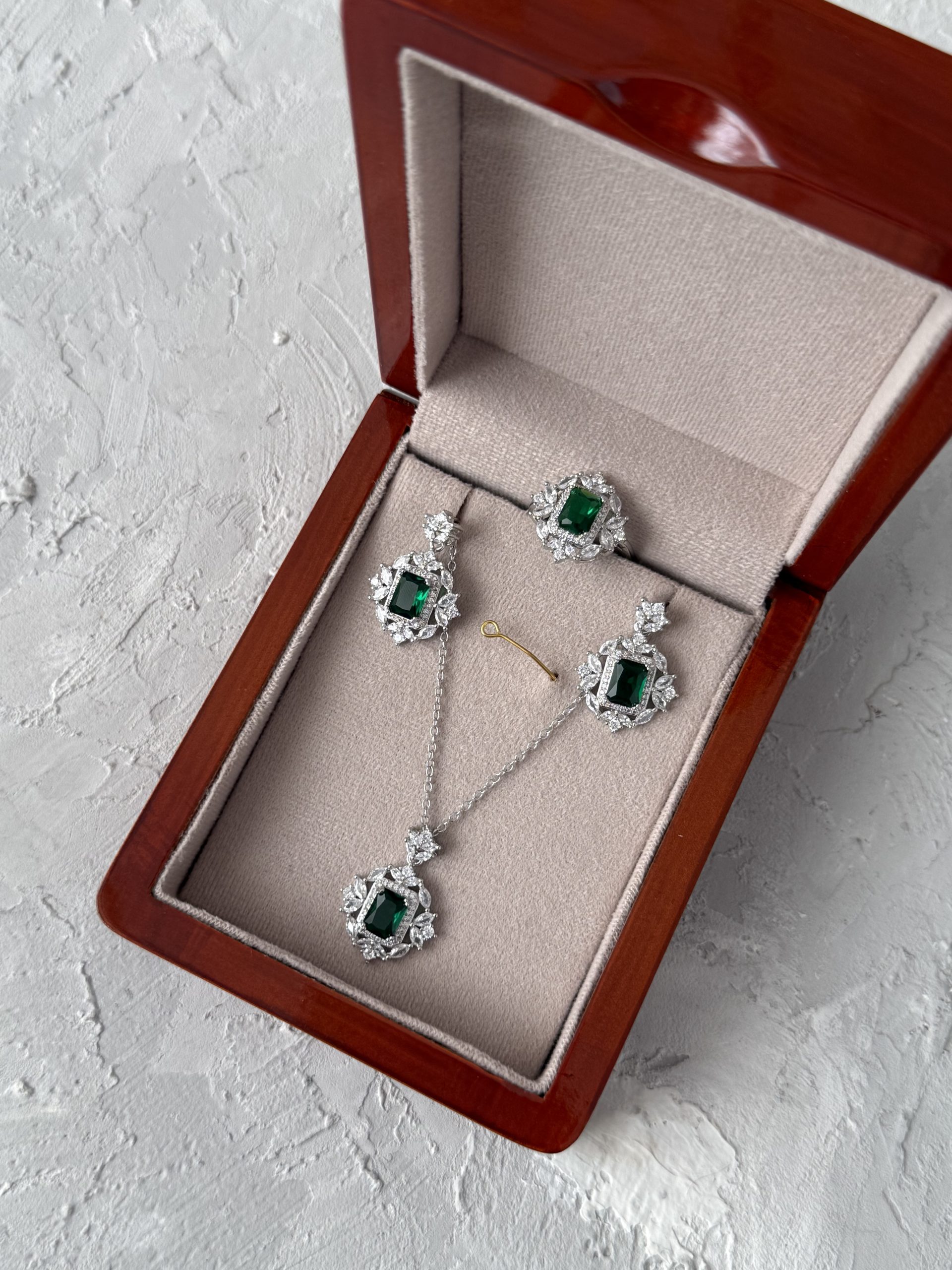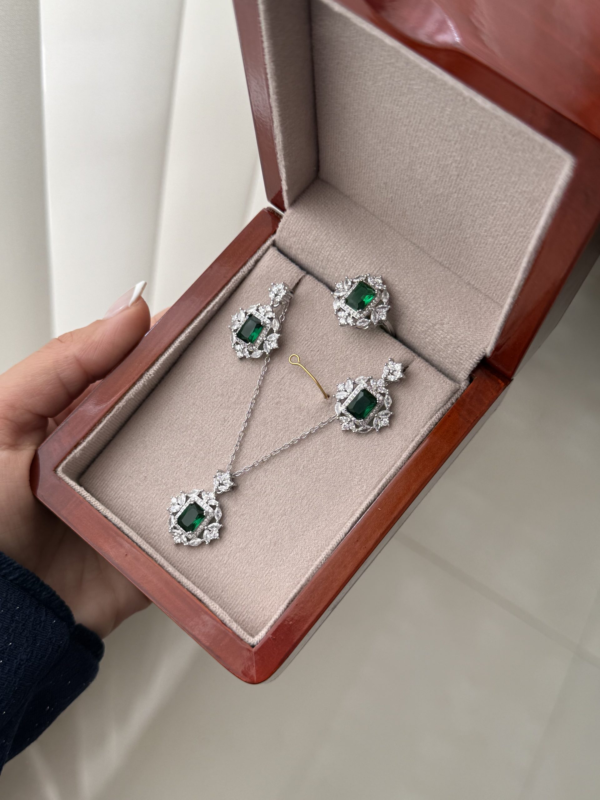 ست جواهری با نگین های مخراج شده و سنگ سبز بسیار با کیفیت
