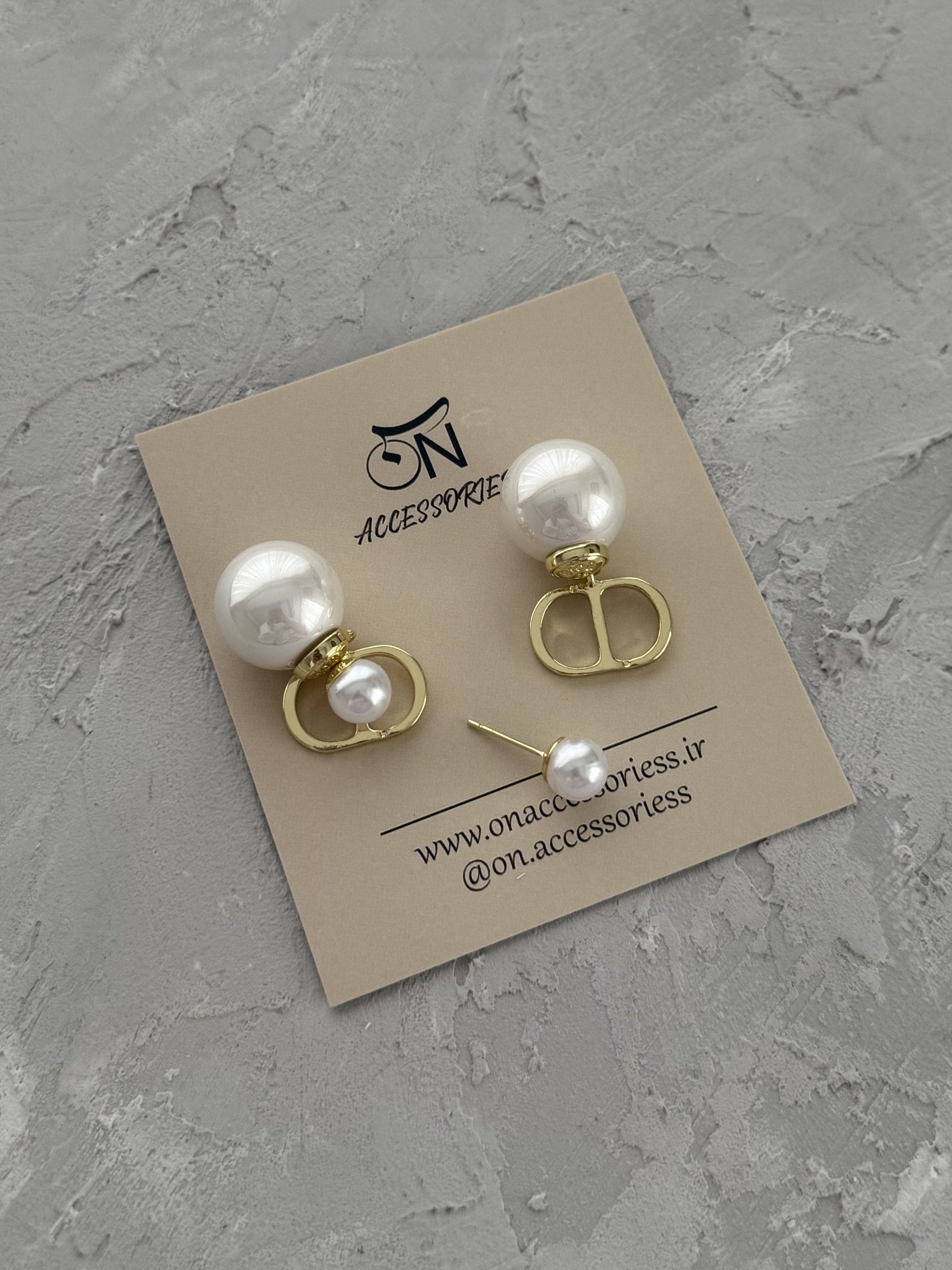 گوشواره دیور با مروارید بسیار با کیف و حک دیور و همچنین آبکاری طلا